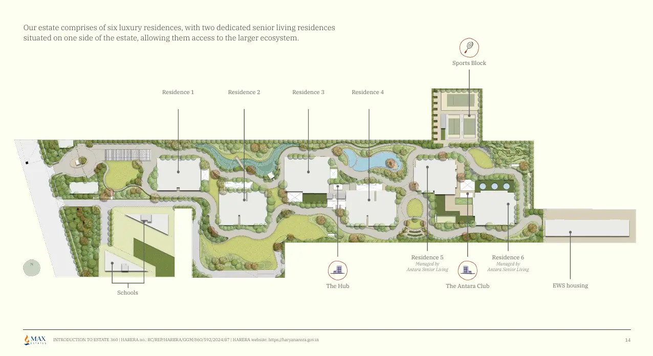 Max Estate 361 brings thoughtfully designed luxury 3 & 4 BHK residences to the emerging urban hub of Dwarka Expressway, crafted to blend modern comfort with mindful senior living. Located in Max Estate 361 Gurugram, within the prestigious Max Estate Sector 36A–Dwarka Expressway, this first-of-its-kind intergenerational community spans 18.5 Acres and features six premium towers—including two dedicated senior-living residences managed by Antara, with 5.5 acres lush green area, and 100+ world-class amenities, all within a serene, car-free landscape. With IGBC Platinum pre-certification and seamless connectivity to Cyber City, IGI Airport, and upcoming Global City, Max Estate 361 is set to become one of the most anticipated landmark developments by Max Estates in Delhi NCR.