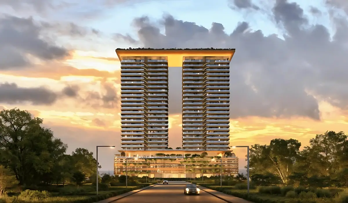The design journey at TREVOC Royal Residences begins with a subtle integration of elements that infuse warmth and comfort into every space. This vision comes to life through the exceptional talents of Morphogenesis, Habitat Architect, and Coopers Hill, whose collaborative genius creates A truly rare and exclusive masterpiece . The twin towers reveal a majestic, wave-inspired design at the podium level, embellished with aluminium perforated sheets.